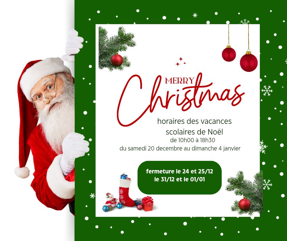 À partir de ce samedi 20 decembre jusqu'au dimanche 4 janvier 2026, nous vous accueillons de 10h à 18h30.