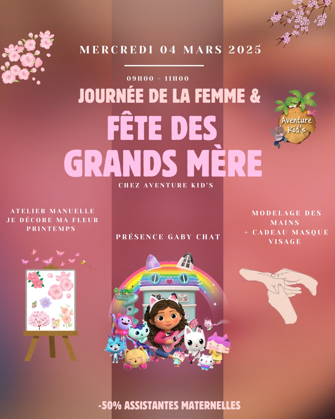 #AventureKids #FeteDesGrandsMeres #JourneeDeLaFemme #AnimationEnfants #SortieFamille #GabyChat #AtelierCreatif